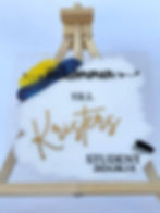 Skriv dit studentens namn, så kommer texten ”Student 2024” att följa med automatiskt. Rosetten är dessutom valfri och kommer i fler olika färger.
